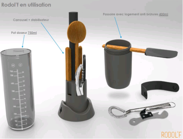 Compagnon idéal des cuisines exigües, road-tripers, plaisanciers, propriétaires de mobile-home et autre tiny-house, Rodol’f vous permet de gagner une place considérable dans les tiroirs de votre cuisine.