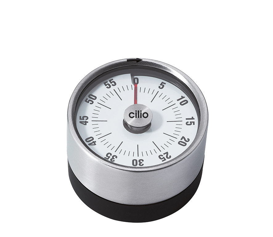 Réduction à l’essentiel. Les cuisines modernes sont souvent meublées simplement et les gens cuisinent de plus en plus avec des produits régionaux les moins traités possible. La minuterie PURE de cilio va bien avec cela. Il est fabriqué en acier inoxydable mat, facile à saisir et possède un aimant pratique à l’arrière pour le fixer au bar de la cuisine, à la hotte aspirante ou au réfrigérateur. Joli détail : le temps à mesurer apparaît dans un champ rouge sur l’affichage facile à lire. Ainsi, vous pouvez garder une trace des choses même à distance.