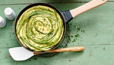 La nouvelle gamme de poêles à frire dotées de manches en bois se prête particulièrement bien aux températures de cuisson supérieures à 230°C, idéales pour réaliser des pommes de terre ou un steak joliment dorés. Le noir mat de la fonte contraste avec le fond lisse qui permet de préserver toutes les surfaces sur lesquelles est posée la poêle, tandis que le toucher doux du bois offre une sensation tactile et une prise en main inédite. L’utilisation du bois a pour avantage de réduire le poids total de cette poêle par rapport à un modèle avec un manche en fonte.